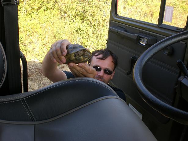 Jaaaa! Schildkröte vor bösen Autoreifen gerettet.