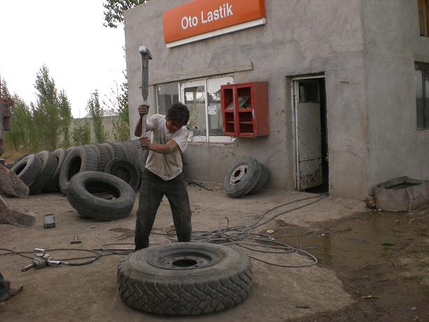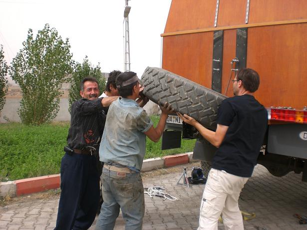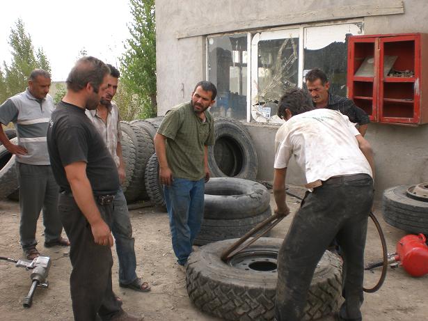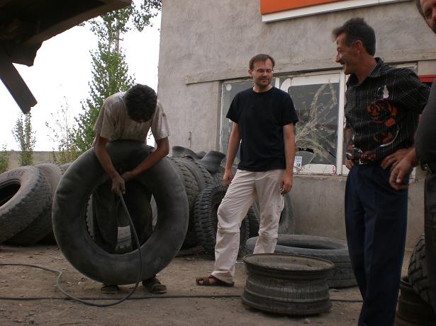 Das Ersatzrad bekommt einen neuen Schlauch. Einen ohne Loch.