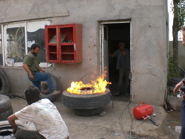 Dieser Reifen (von einem anderen Kunden) wird per Benzin-Expolsion