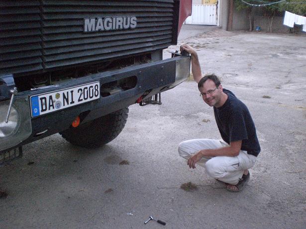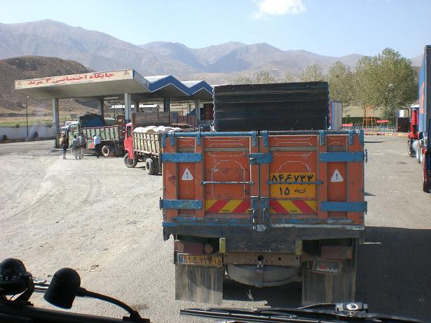In der Nähe der Grenzen ist Diesel schwer zu bekommen. Superkurze Schlange! Glück gehabt, aber sie rücken nur 60l raus. |