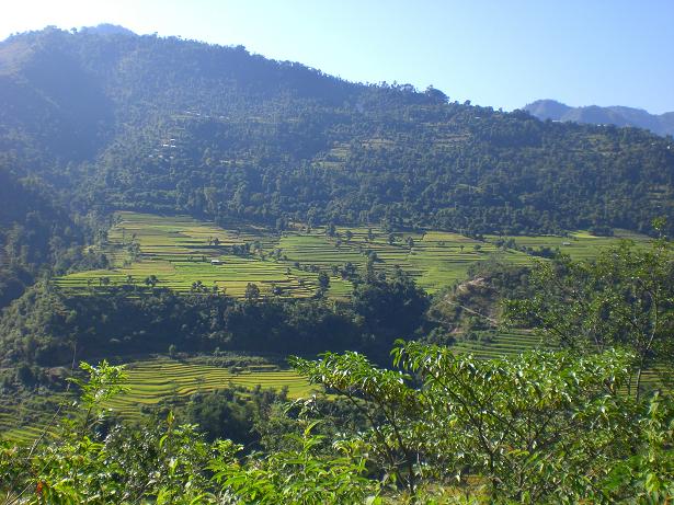 Das Terai. Der flache Streifen fruchtbares Land im Süden des Landes.