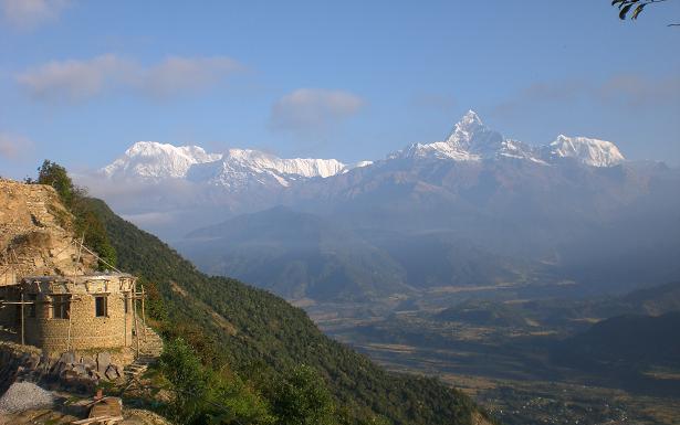 Im Hintergrund sieht man Pokhara und den Fewa See.
