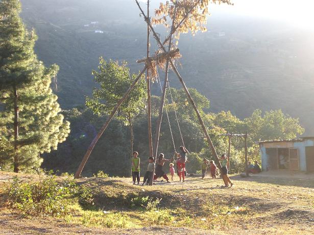 Oft in Nepal zu sehen. Schaukelgestell aus Bambus.