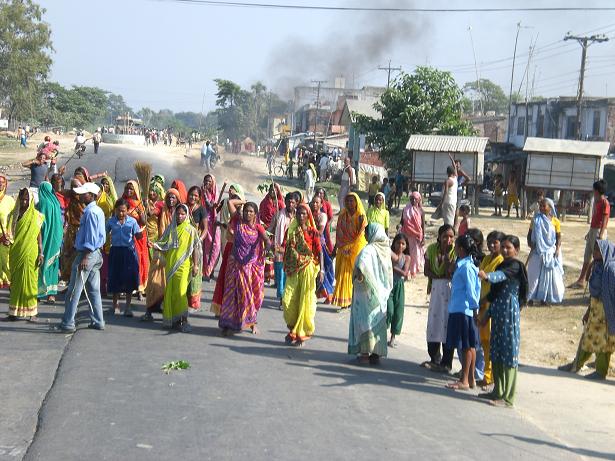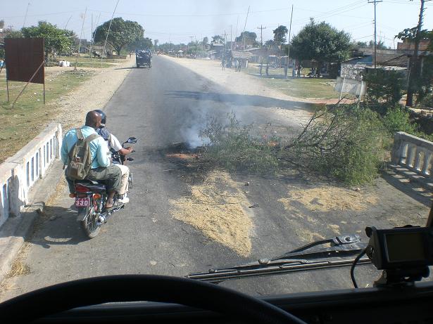 Brennender Baum als Streik Barriere. Vielleicht etwas zu halbherzig.
