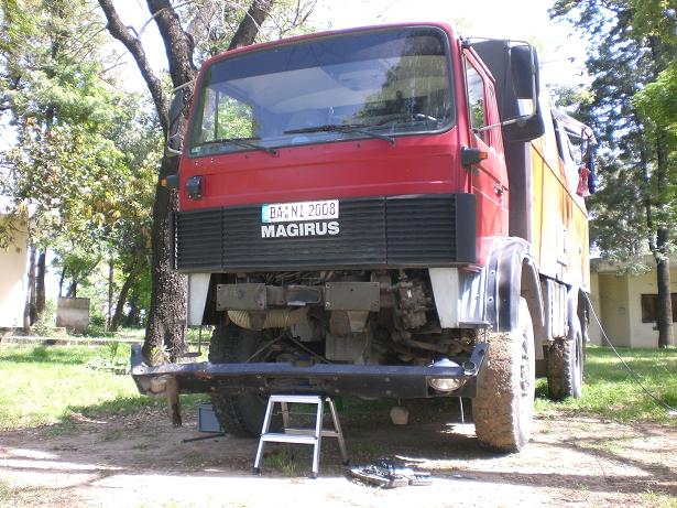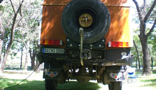 Neu: Ersatzrad mit Radkappe, gebrauchte Stoßstange als Gepäckstück und