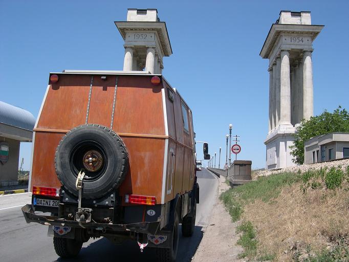 Brücke über die Donau und Ausgang aus Bulgarien.