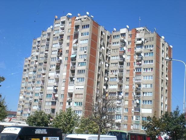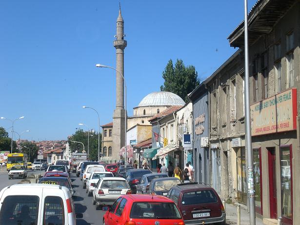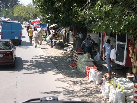 Markt auf der Ausfallstrasse Richtung Albanien: Stau.
