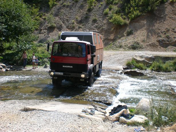 Fahrt durch den Bach zu unserem Nachtplatz.