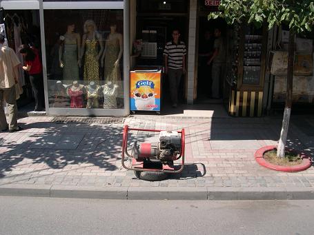 Auf der Hauptstrasse in Pritzren laufen die Generatoren auf dem