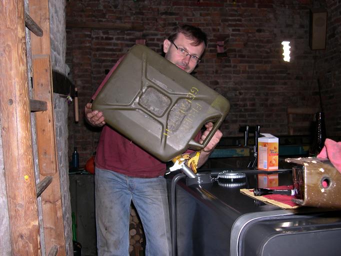 Tankeinweihung. Mit 5 Litern wird nur der Boden leicht befeuchtet |