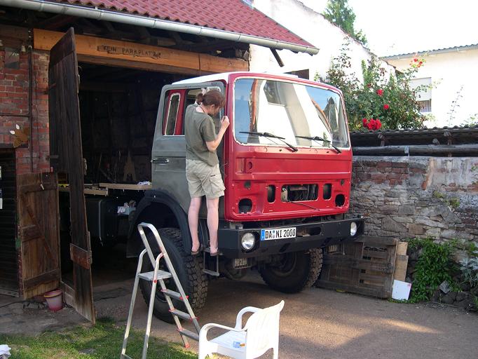 Das Fahrerhaus bekommt neue Farbe. Rubinrot - RAL3003