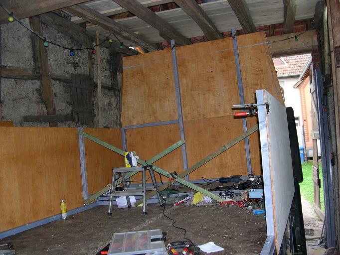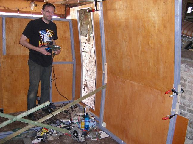 Montage der Platten an den aufgesetzten Holzrahmen.