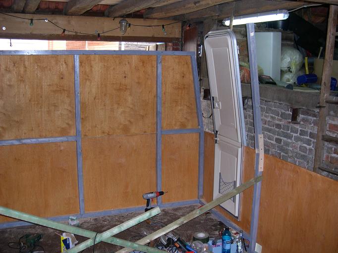 Zweiteilige Campingtür wegen dem Knick in der Wand.