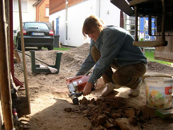 Damit wir wieder aus der Scheune kommen muß der Boden tiefer gelegt