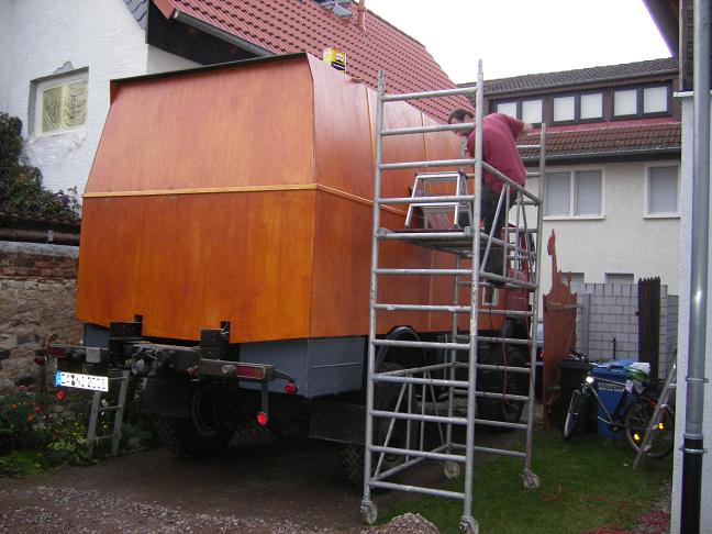 Wir bauen eine Kiste aus Holz auf die Ladefläche und streichen sie mit