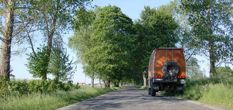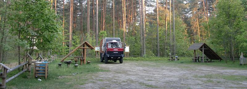 Bei Stettin überqueren wir die Oder und wählen die südliche Route nach Danzig. Bei Miroslawiec verlassen wir die B10 um die Pommersche Seenplatte zu queren. Ein Parkplatz im Naturschutzgebiet bietet uns eine gute Nacht. In Danzig stehen wir auf einem