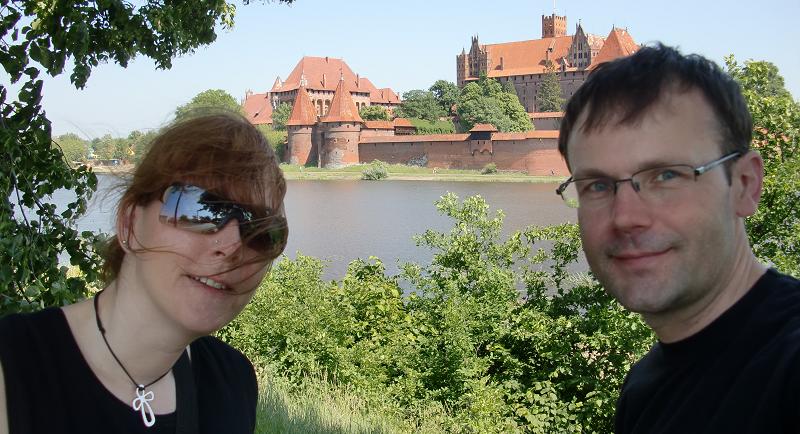 Südlich von Danzig gibt es die Marienburg. Das ist die beste Backsteinburg Europas und dermaßen sehenswert, daß wir nicht einfach daran vorbei fahren konnten. Wir machen ein Foto von der anderen Seite des Fusses. Die Marienburg 01.06.2011