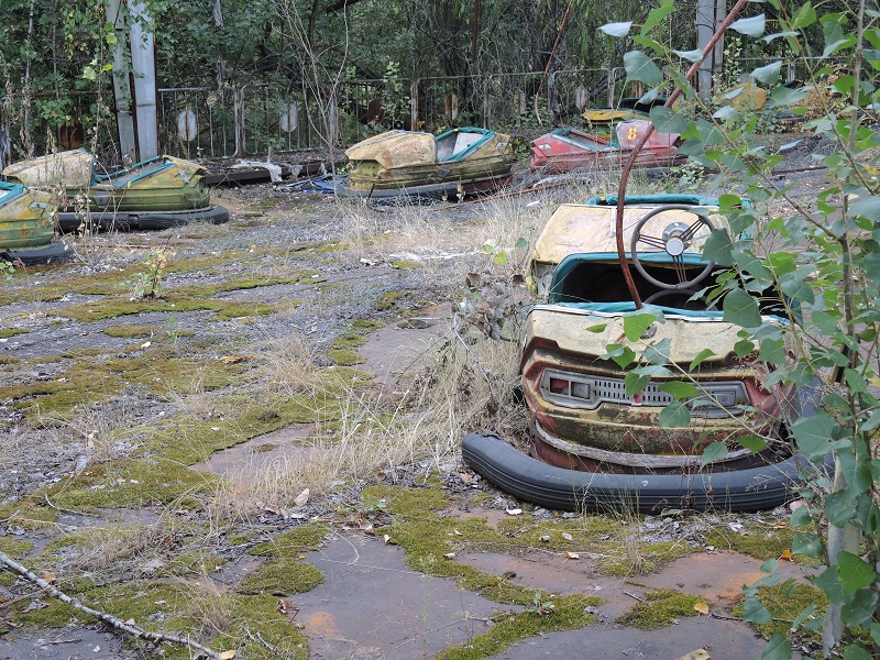 | Prypjat wurde erst 36 Stunden nach dem Reaktorunfall evakuiert. Dadurch wurden viele Anwohner einer hohen Strahlung ausgesetzt. Die Bewohner wurden in dem Glauben gelassen, sie könnten in wenigen Tagen wieder zurück kehren. Daher sind die meisten Gebäude noch im Originalzustand. Vieles wurde aber auch gepündert. |