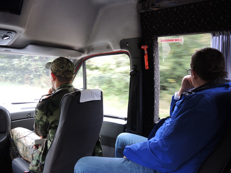 | Die Touristen werden in Kiev eingeladen und dann geht es nach Norden. Nach der Bezahlung gibt es eine Gebrauchsanweisung für die Tour mit Verhaltensregeln (bei der Gruppe bleiben, nix in den Mund nehmen, usw.) Passieren kann uns nichts: wir sind ja versichert. |