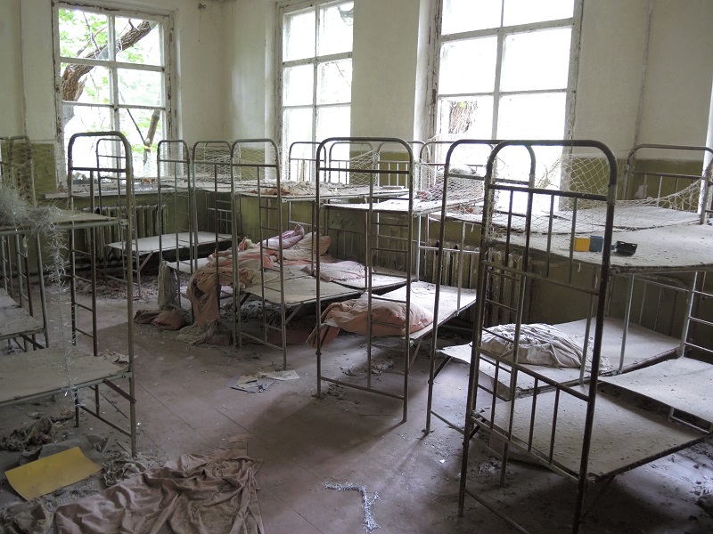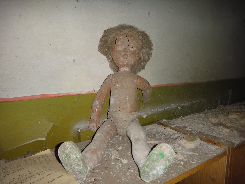 | Auf dem Weg in die Stadtmitte besichtigen wir den verlassenen Kindergarten. Ein Stück weit sieht es wirklich so aus, als ob bei der Evakuierung alles so stehen und liegen gelassen wurde. Viele Dinge wirken aber irgendwie arrangiert. Bedrückend ist es auf alle Fälle. |